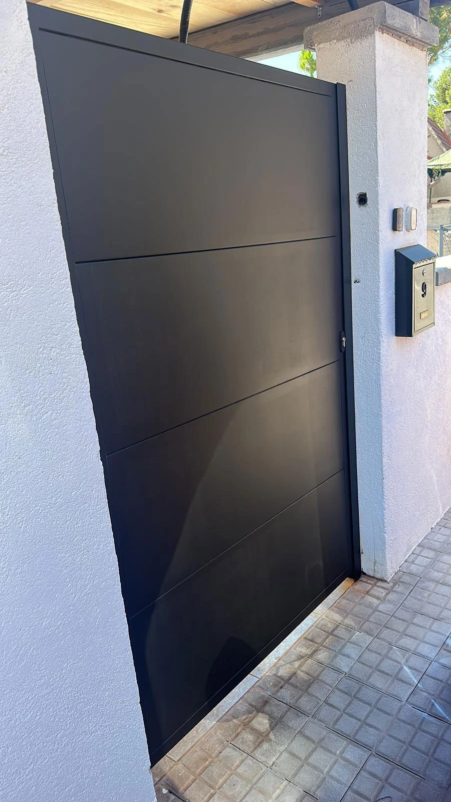 FINOX ha fabricado una puerta exterior a medida en hierro pintado, pensada para la entrada principal de una vivienda.
